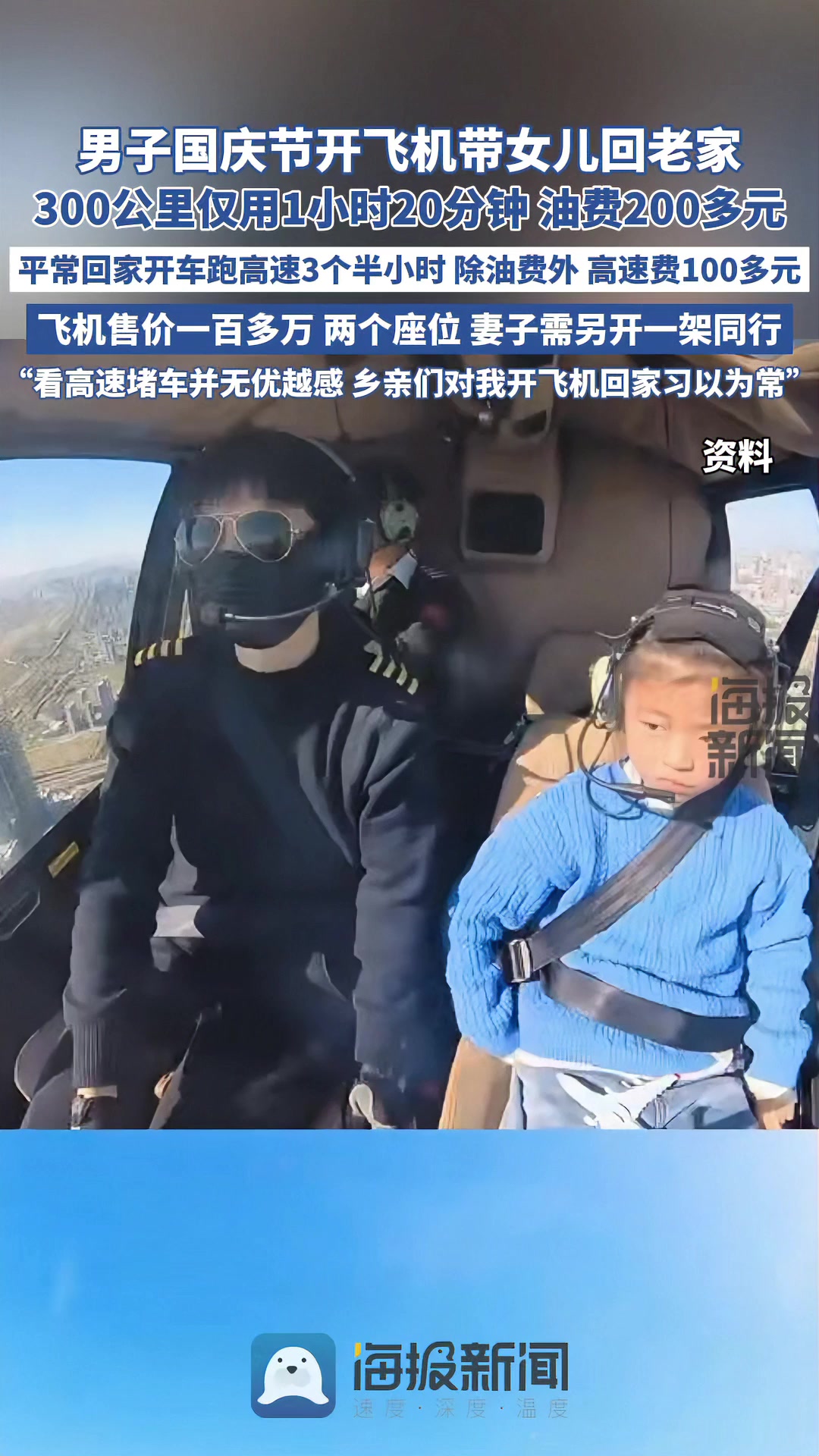 男子國慶節(jié)開飛機(jī)帶女兒回老家